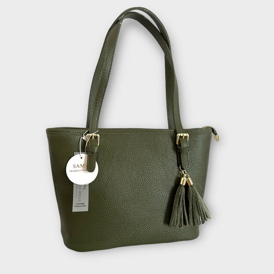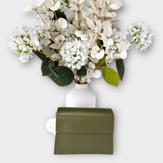 Sage - Luxury Leather Fold Over Double Compartment Crossbody Bag