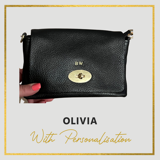 Olivia Leather Handbag, Flap over with postman lock detail
